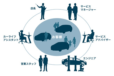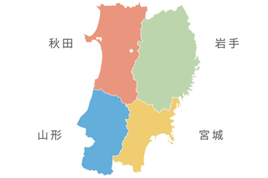 東北エリア4県で私たちは秋田県、岩手県、宮城県、山形県の4県を担当する広域ディーラーです。そのコミュ二ティーを活かして、広い範囲でお客様のカーライフをサポートします。